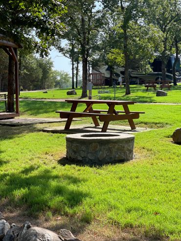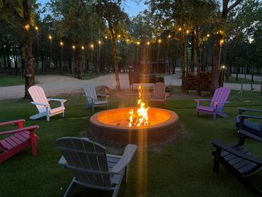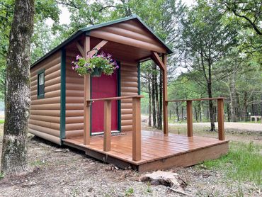 We are a small campground located off Highway 3 in Ringold, OK. Easy access, secluded and heavily wooded. There is a large fishing pond on site. Large RV sites, big rig friendly and trailer parking available. Full hook-ups with 30/50 amp at every site. Some sites have small cabins at an extra price that are approximately 100 sq feet with twin over full bunkbed with AC/heat/mini fridge/microwave.